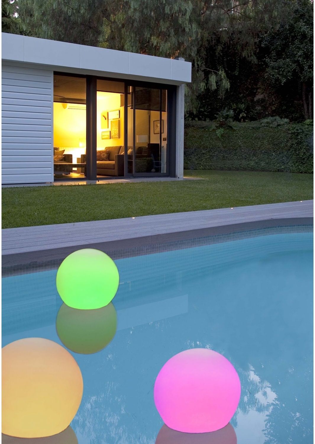 Las luces led son ya un habitual en casi todos los hogares, por su menor consumo, mayor durabilidad, más seguras y ecológicas que las convencionales de toda la vida. En esta ocasión se ha dotado a la piscina de estos farolillos iluminados en distintos colores los cuales consiguen producir una mezcla de elegancia pero a la vez un aire juvenil y desenfadado. Los led’s han conseguido ganar mucho terreno, la última tendencia para tu jardín son los muebles retro iluminados, sofás, pufs, mesas, infinidad de muebles que harán de tu terraza un espacio único.