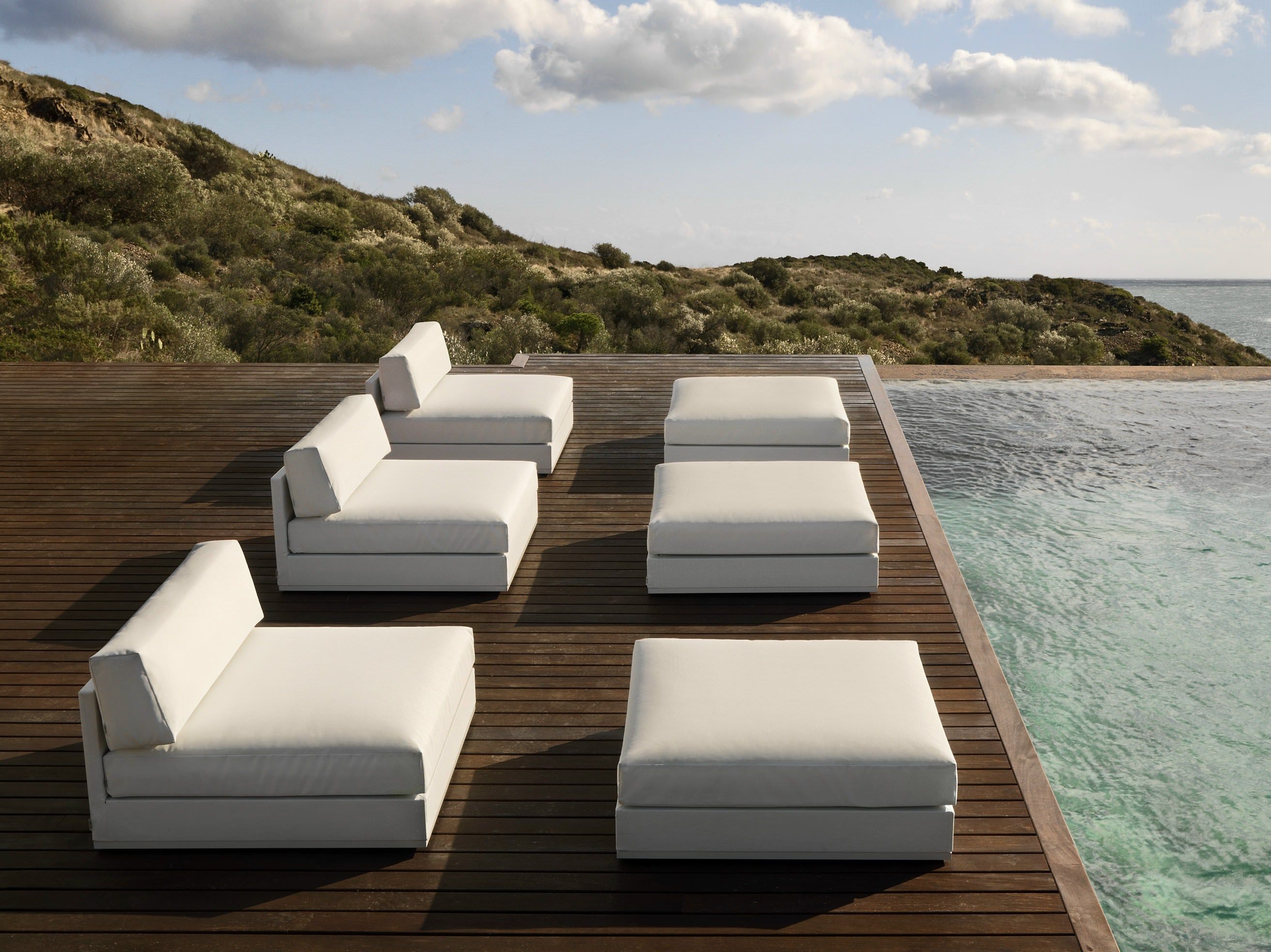 Para crear ambientes más elegantes y un poco más formales en la piscina, una opción es optar por sofás completados con sillones que nos inviten a disfrutar de los exteriores relajándose al 100%. Una puesta de sol o un cielo estrellado sobre un cómodo sofá cerca del agua puede ser una estampa inolvidable.